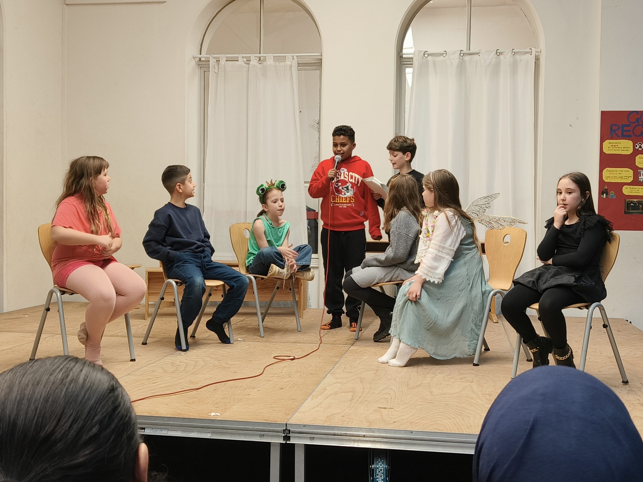 Die Bienenklasse 3c hat im Rahmen der sozialen Woche das Theaterstück „Notruf aus dem Märchenland“ eingeübt. Fünf Tage lang haben die Kinder fleißig Texte auswendig gelernt und die verschiedenen Szenen geprobt. Einzelne Szenen wurden im Laufe der Woche gefilmt und auf der digitalen Tafel abgespielt.